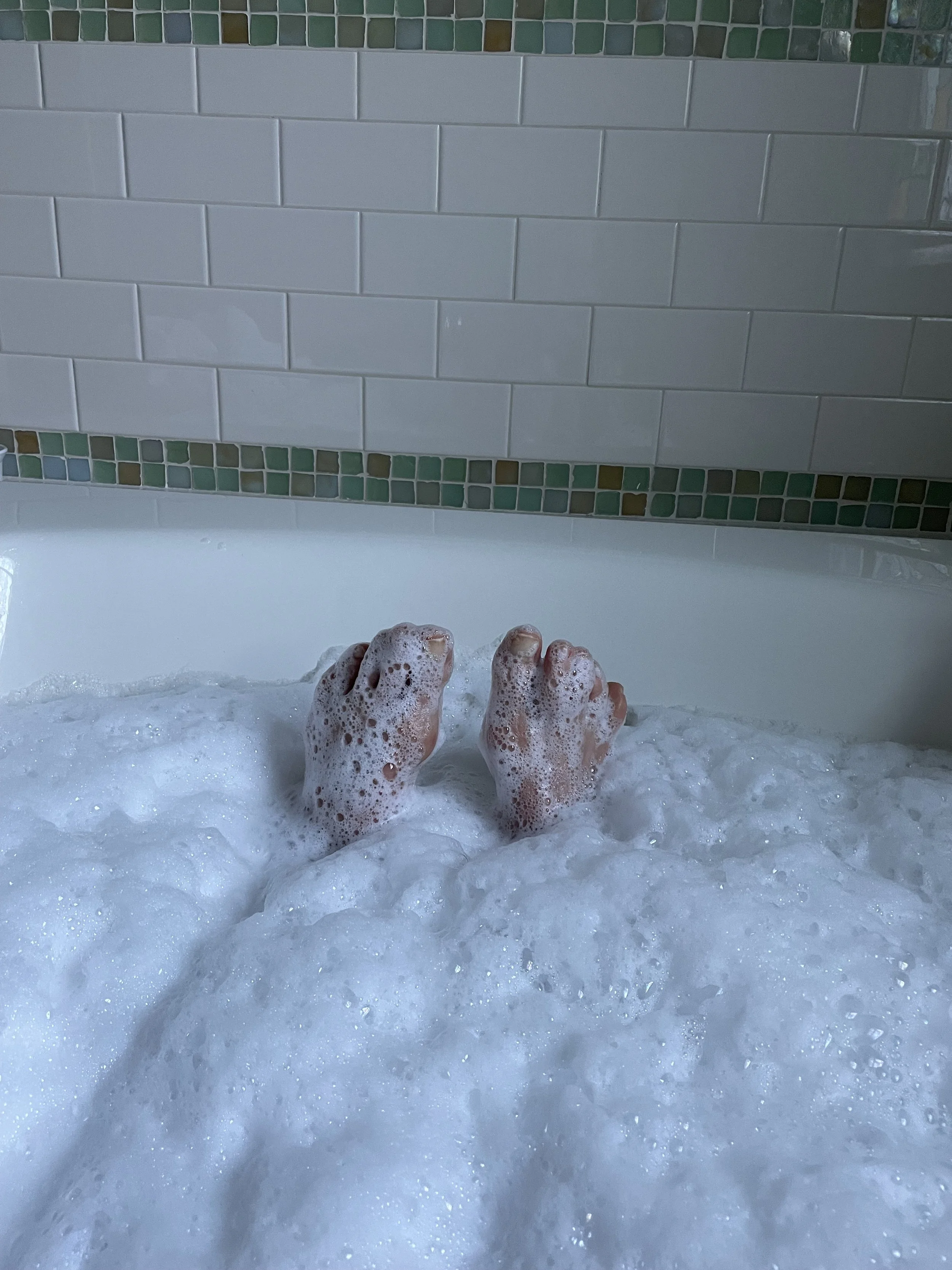 Early morning foot play in a bubble bath — Sue.