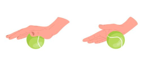 Then, using your small ball on a table surface, slowly roll it around the palms, pausing & leaning into spots that feel stuck.